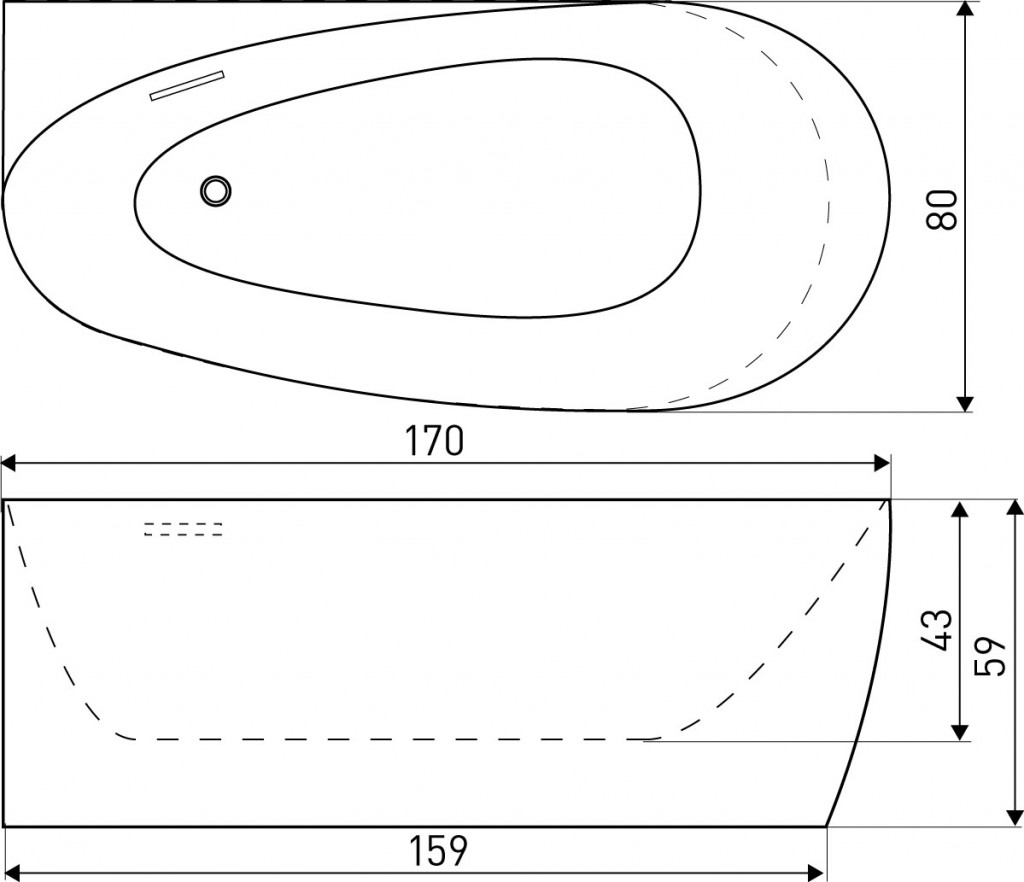 - šírka v hornej časti vane: pri operadle - 76 cm, pri odtoku - 50 cm