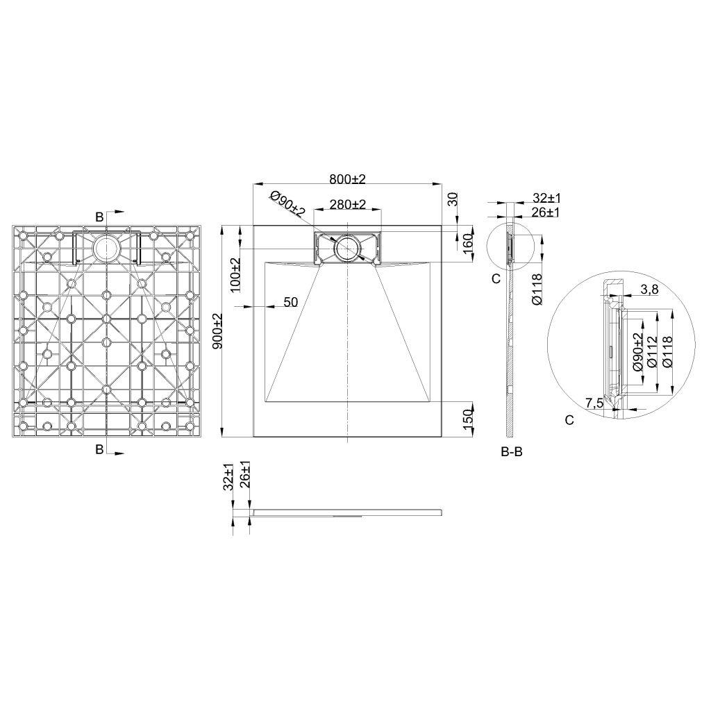 Moderná alternatíva ku klasickým riešeniam. Táto sprchová vanička s rozmermi 80 x 90 cm ponúka o niečo viac využiteľného priestoru a zároveň si zachováva elegantný geometrický tvar. Je ideálny pre malé a stredne veľké kúpeľne. Jej ľahká konštrukcia z termosetového kompozitu SMC zaisťuje jednoduchú inštaláciu a prepravu. Protišmykový kamenný povrch robí sprchovanie bezpečným a príjemným. Vaničku je možné skrátiť do akéhokoľvek výklenku. Je možné ju kombinovať so sifónom Easy Clean (SU-AK-701) alebo Slim (SU-AK-702) s vodným uzáverom.