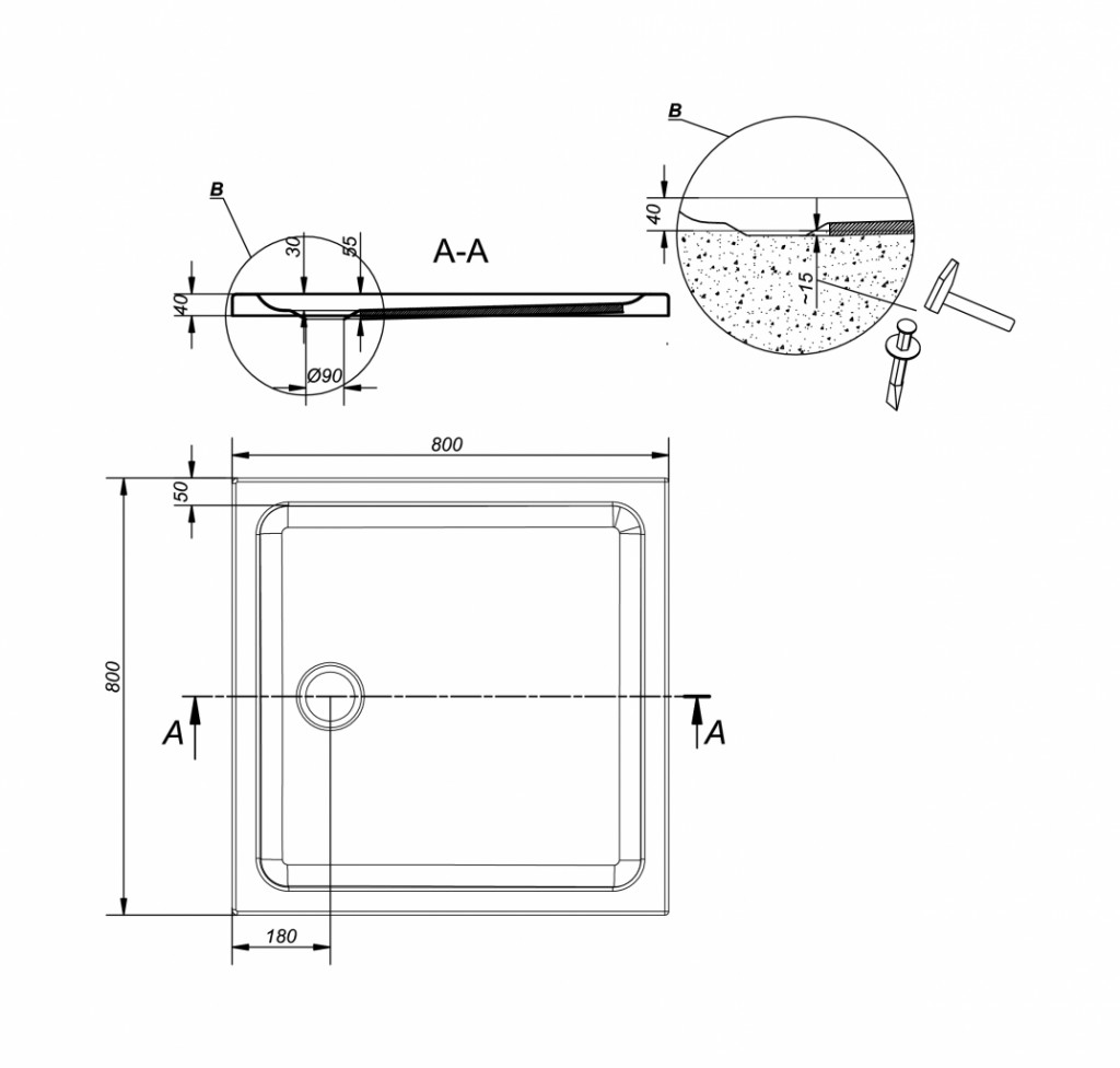 Sprchová vanička TAKO 80x4, štvorec CW (S204-009)