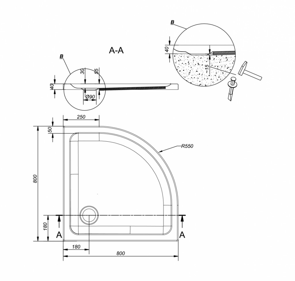 Sprchová vanička TAKO 80x4, štvrťkruh CW (S204-001)