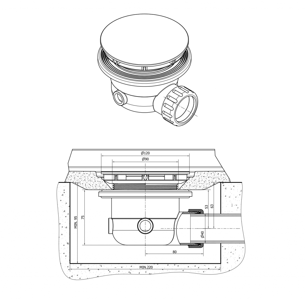 - Shora čistitelný odpadní systém