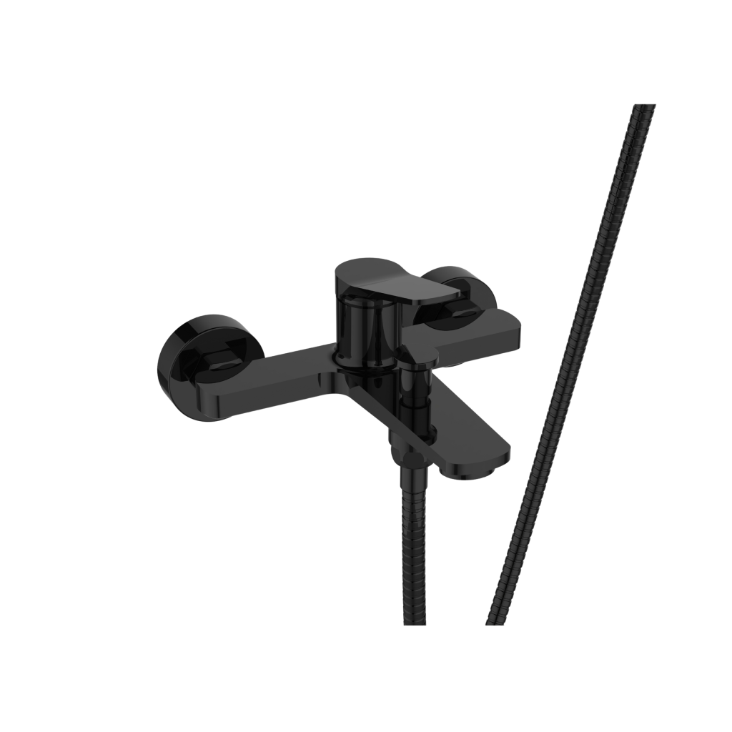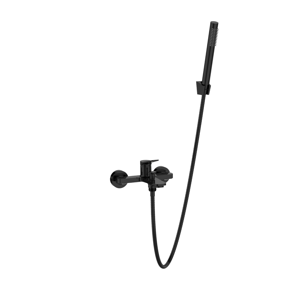 Vaňová batéria ALONIA v lesklej čiernej farbe spája elegantný dizajn s praktickými funkciami, čím prispieva k príjemnému zážitku z kúpeľa a zároveň podčiarkuje estetiku vašej kúpeľne.