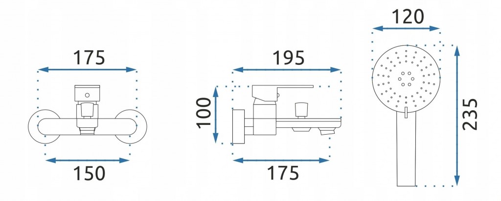 - Držiak ručnej sprchy pripravený na umiestnenie na stenu.