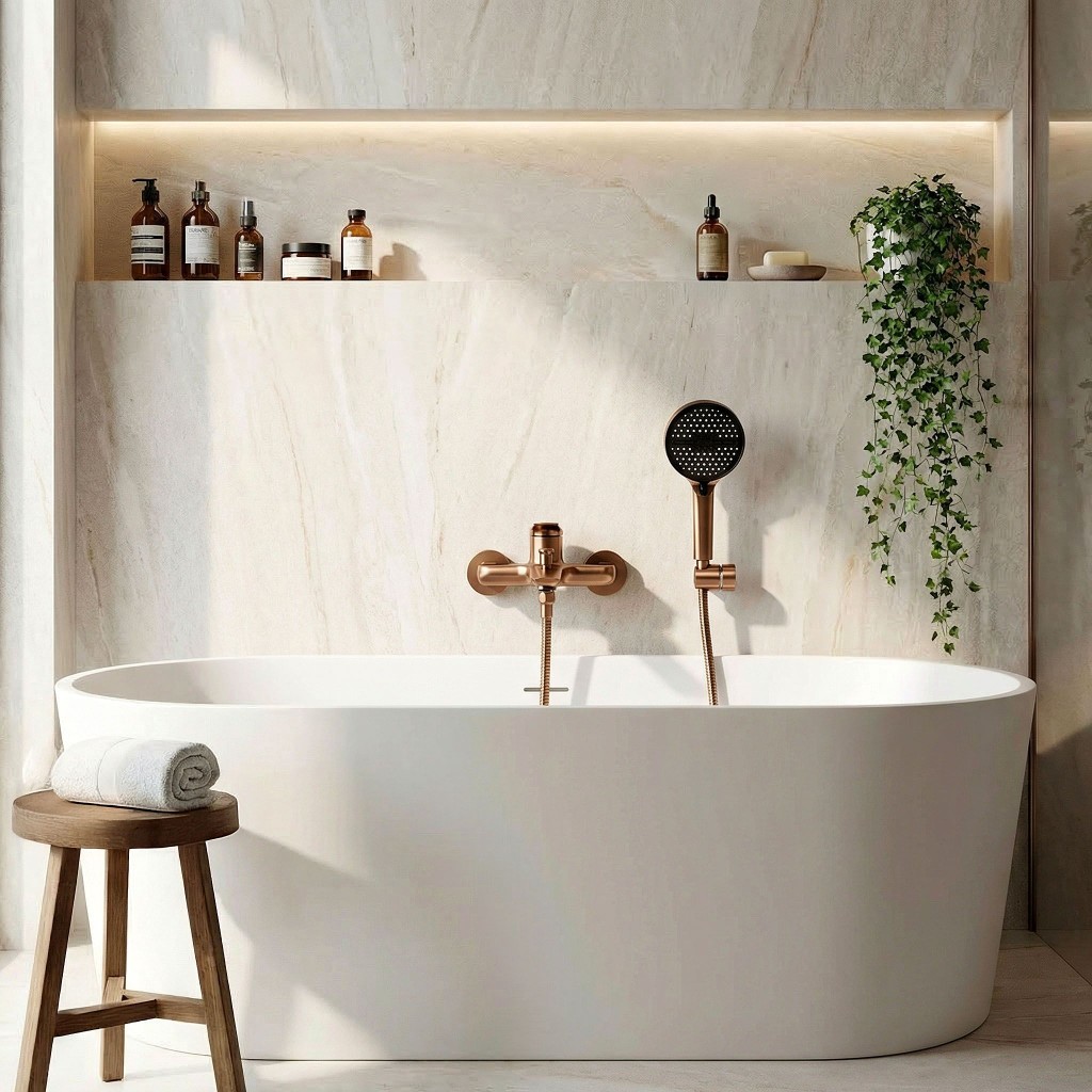 Vaňová batéria Vision v brúsenom prevedení je elegantnou voľbou pre moderné a starostlivo prepracované kúpeľne. Jej štíhla, výrazná forma, nástenný spôsob montáže a saténový brúsený povrch jej dodávajú ľahkosť a zdôrazňujú moderný charakter kúpacej zóny. Set so sprchovou hlavicou predstavuje praktické a estetické riešenie pre každodenné používanie. Nástenná montáž batérie – riešenie, ktoré umožňuje vytvoriť usporiadanú a elegantnú zónu pri vani a skvele zapadá do moderných kúpeľňových aranžmánov. Hlavica ponúka štandardné režimy prúdu a tiež prúd typu „bidetka“ umiestnený v hornej časti hlavice, čo výrazne uľahčuje udržovanie čistoty v sprchovej zóne. Brúsený povrch – saténový povrch dodáva armatúre nadčasový vzhľad, ktorý sa skvele hodí do elegantných kúpeľní. stabilitu, odolnosť pri každodennom používaní a estetický vzhľad po dlhú dobu. Keramická kartuša – zodpovedá za plynulú a presnú reguláciu teploty a prúdu vody, čo sa premieta do pohodlia a spoľahlivého fungovania batérie. štýlu, funkčnosti a pohodlia pri používaní. Je to prepracovaný prvok vybavenia, ktorý efektne zvýrazňuje kúpaciu zónu a dodáva celej aranžácii moderné, štýlové a elegantné zakončenie.