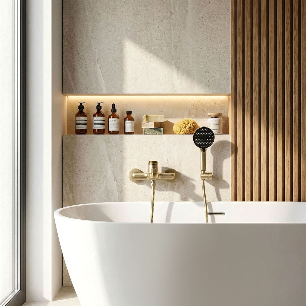 Vaňová batéria Vision v brúsenom prevedení je elegantnou voľbou pre moderné a starostlivo prepracované kúpeľne. Jej štíhla, výrazná forma, nástenný spôsob montáže a saténový brúsený povrch jej dodávajú ľahkosť a zdôrazňujú moderný charakter kúpacej zóny. Set so sprchovou hlavicou predstavuje praktické a estetické riešenie pre každodenné používanie. Nástenná montáž batérie – riešenie, ktoré umožňuje vytvoriť usporiadanú a elegantnú zónu pri vani a skvele zapadá do moderných kúpeľňových aranžmánov. Hlavica ponúka štandardné režimy prúdu a tiež prúd typu „bidetka“ umiestnený v hornej časti hlavice, čo výrazne uľahčuje udržovanie čistoty v sprchovej zóne. Brúsený povrch – saténový povrch dodáva armatúre nadčasový vzhľad, ktorý sa skvele hodí do elegantných kúpeľní. stabilitu, odolnosť pri každodennom používaní a estetický vzhľad po dlhú dobu. Keramická kartuša – zodpovedá za plynulú a presnú reguláciu teploty a prúdu vody, čo sa premieta do pohodlia a spoľahlivého fungovania batérie. štýlu, funkčnosti a pohodlia pri používaní. Je to prepracovaný prvok vybavenia, ktorý efektne zvýrazňuje kúpaciu zónu a dodáva celej aranžácii moderné, štýlové a elegantné zakončenie.