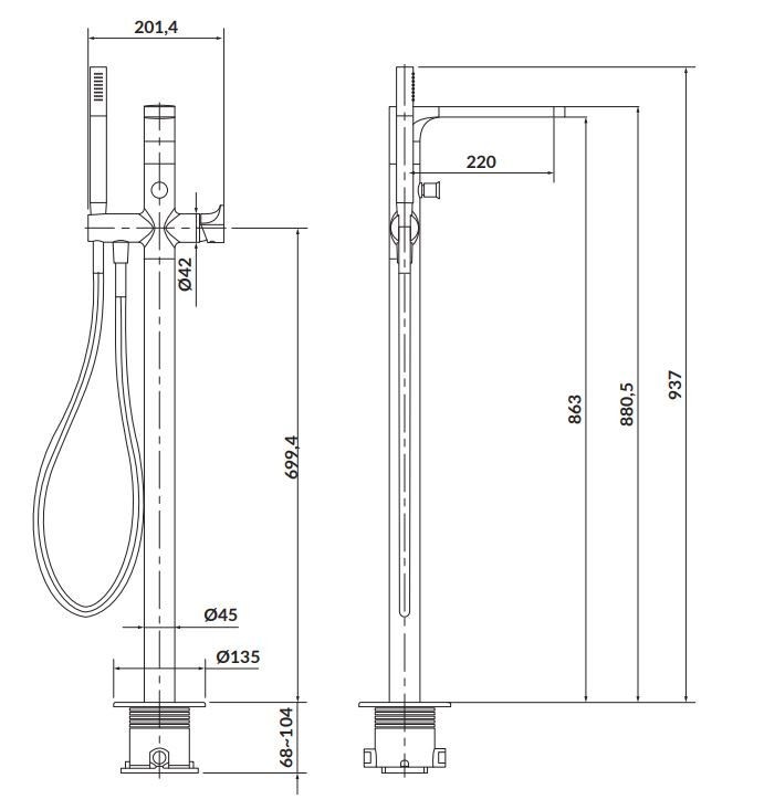 Minimalistický a moderný štýl batérie INVERTO sa bude skvele hodiť do kúpeľní takého charakteru. Voľne stojaca jednopáková vaňová/sprchová batéria z kolekcie INVERTO je vybavená ekologickým perlátorom Cersanit Air a 35mm keramickou kartušou, ktorá umožňuje plynulé nastavenie prúdu vody po celú dobu jej životnosti. Sada obsahuje 1funkčné ručné sprchy s priemerom 2,4 cm so silikónovou úpravou Cersanit EasyCLEAN a sprchovú hadicu z PVC 150 cm (certifikát WRAS). Sada obsahuje prídavnú rukoväť s modernistickou formou v zlatej farbe.