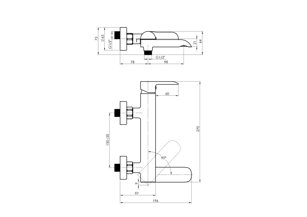 Prednosti v anovej nástennej vodovodnej batérii ULTRA-10/K GRAFIT:- Vaňová nástenná so sklopným výtokovým ramienkom , ktorý zároveň slúži ako prepínač