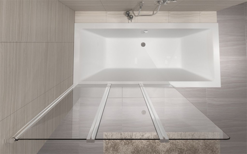 Princíp je jednoduchý. Celú vaňovú zástenu tvoria 3 časti, ktoré sú z 5mm tvrdeného skla a hliníkových profilov vo vysokom lesku .