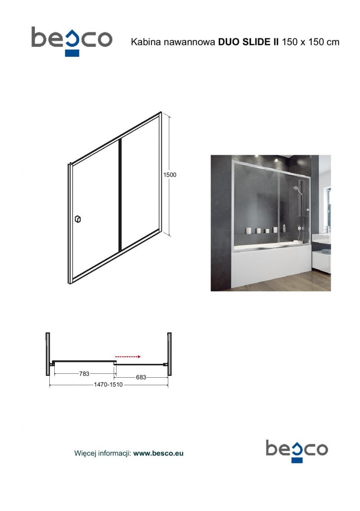 Luxusná vaňová zástena DUO SLIDE II dokonale chráni Vašu kúpeľňu pri kúpaní aj sprchovaní. Je dodávaná v prevedení s 6 mm bezpečnostným sklemana ponúka jednu posuvnú stranu.
