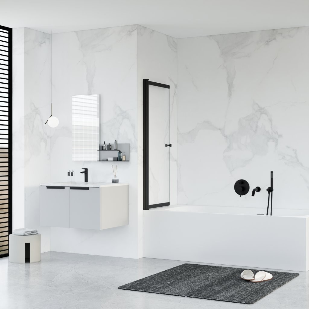 Posuvná vaňová zástena EASY SLIDE BLACK NEW vyniká kvalitným spracovaním hliníkového rámu vo farbe čierna matná a bezpečnostného skla. Dvojdielne spracovanie zásteny sa hodí pre všetky obdĺžnikové vane a pre niektoré asymetrické vane. Vaňová zástena sa dá sklopiť k stene a to na obe strany.