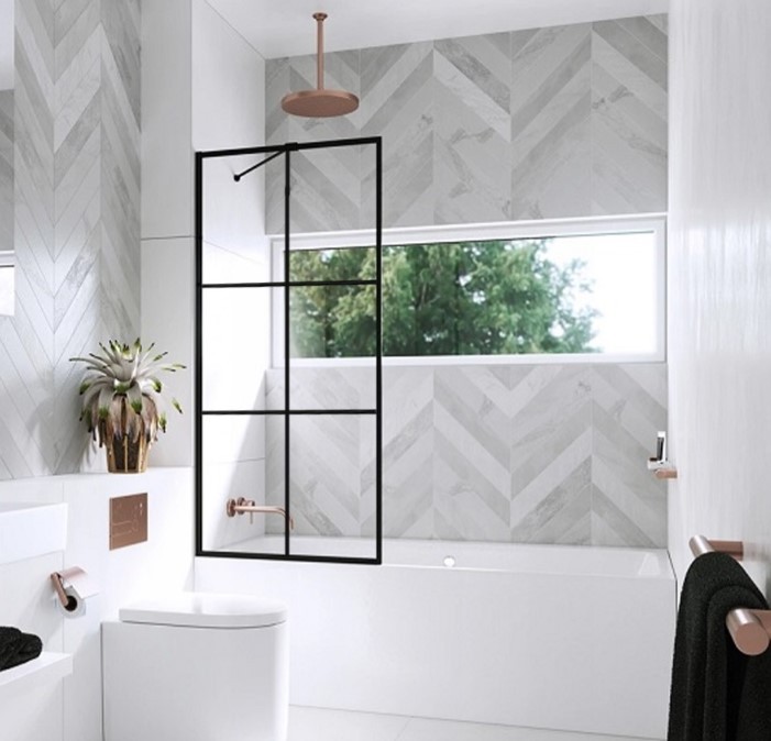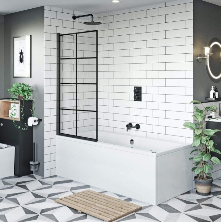 Kombinácia čiernych rámčekov a priehľadného skla nemusí byť len trendy záležitosťou dverí. Tento prvok môžete zakomponovať aj do kúpeľne v podobe pevnej vaňovej zásteny. Perfektne vyvážite celkový dizajn interiéru a vytvoríte elegantné miesto s nádychom industrializmu . Vaňová zástena je pevnou stenou, ktorú jednoducho namontujete. Jej vzhľad zvádza, aby ste ju použili ako priehľadnú stenu do výklenku.