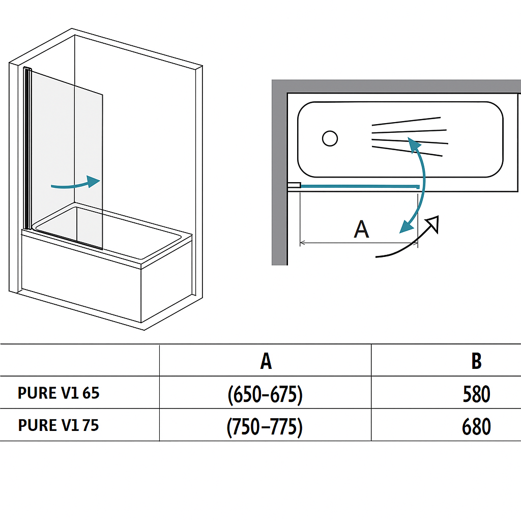 Vaňová zástena dvojdielna sklopná