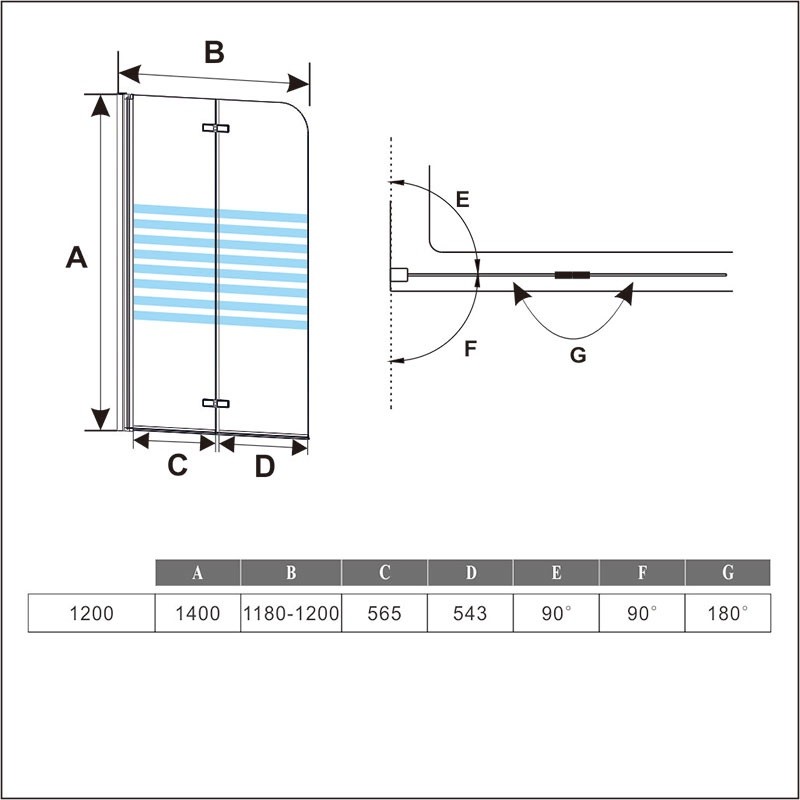 Parametre:- vaňová zástena jednodielna sklopná o 180 stupňov