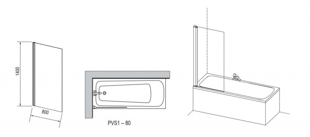 - inštalácie: 1 zvislý profil a 1 pevný diel, na klasickú obdĺžnikovú vaňu s rovným horným lemom