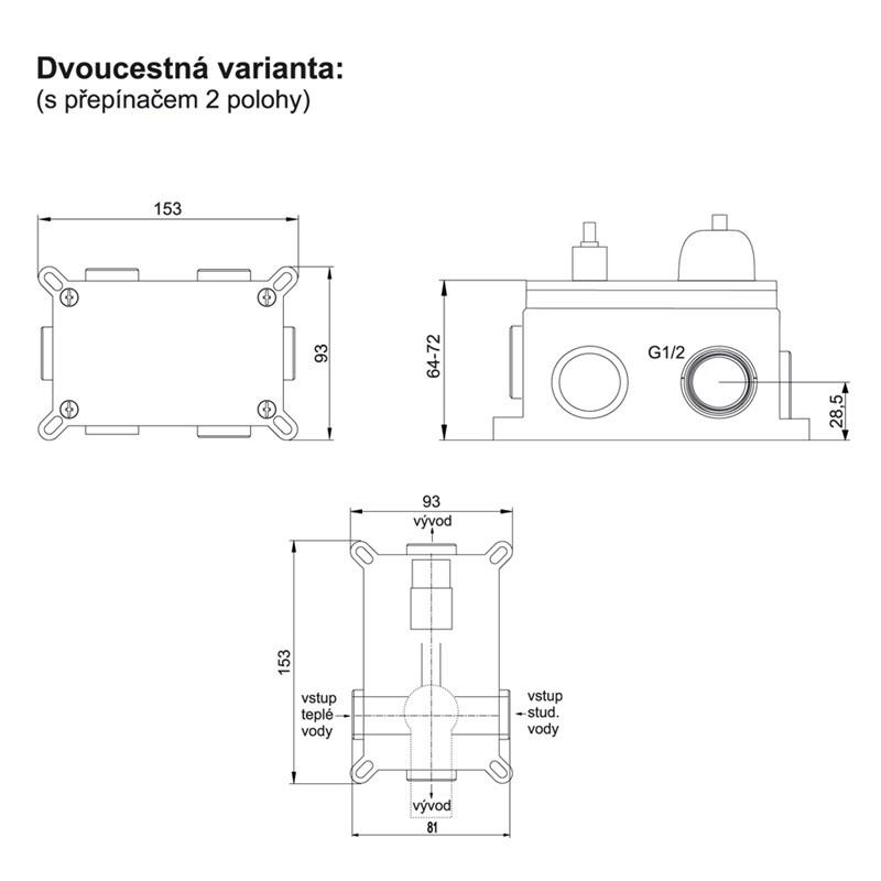 Dvojcestná varianta (prepínanie dvoch polôh tlačidlom) je určená do sprchových kútov s ručnou a hlavovou sprchou alebo k vani s napúšťaním prepadom a možnosti sprchovanie.