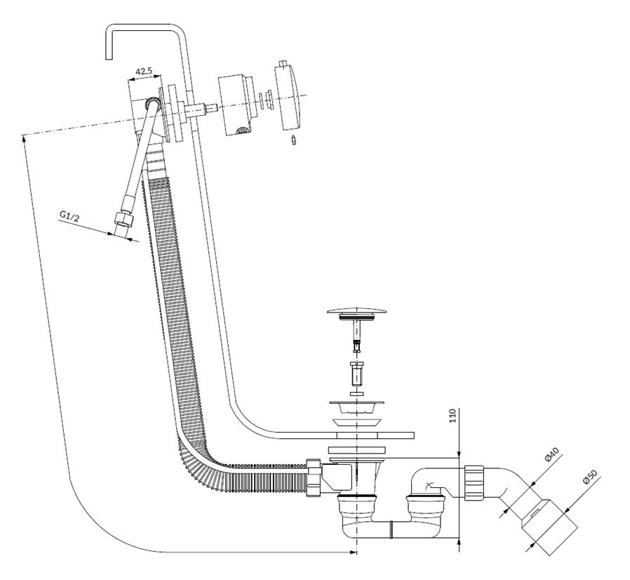 Prednosti vaňového sifónu s napúšťaním cez prepad:- určené pre vane s priemerom odtoku ø5,2 cm