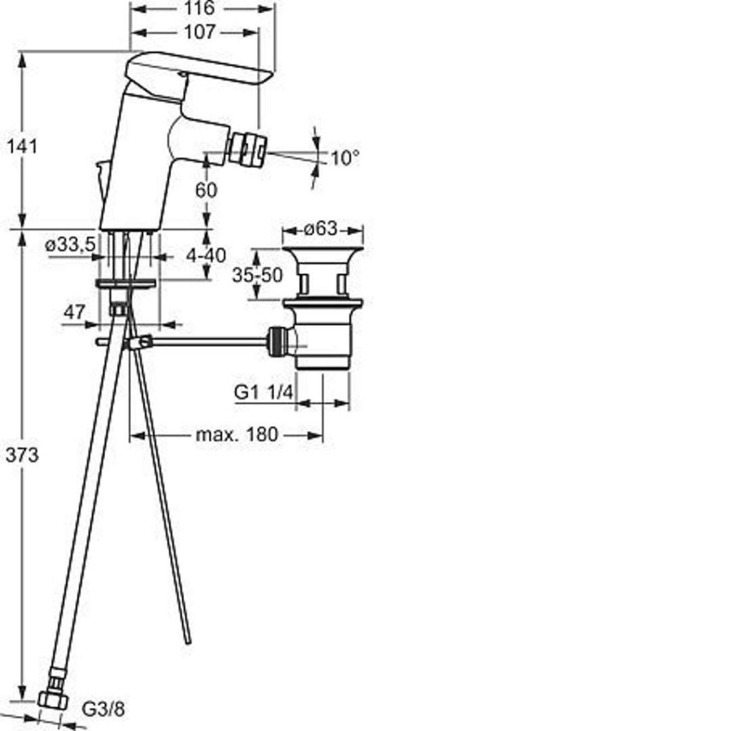 - pripojenie tlakovej hadice G 3/8