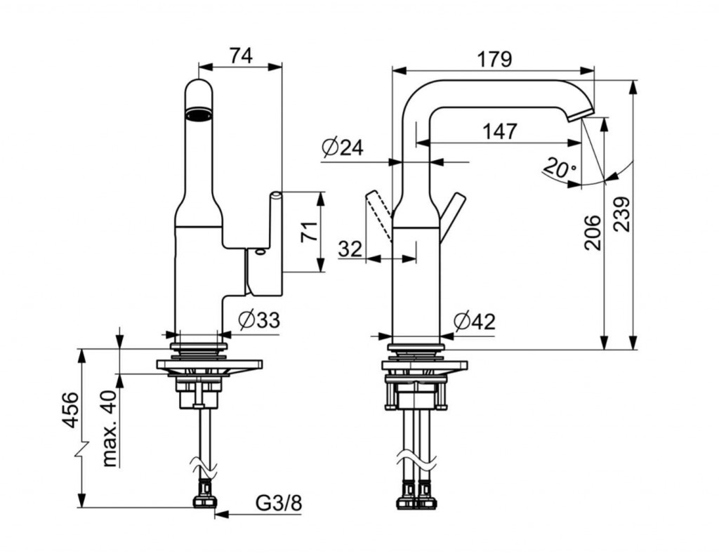 Páková umývadlová batéria s otočným ramenom