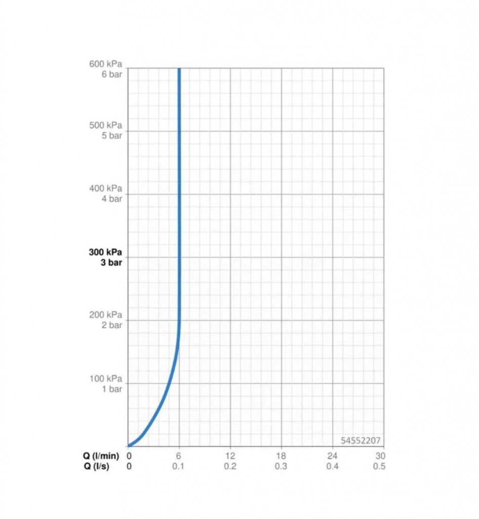 - prietok pri 0,3 MPa: 6 l/min