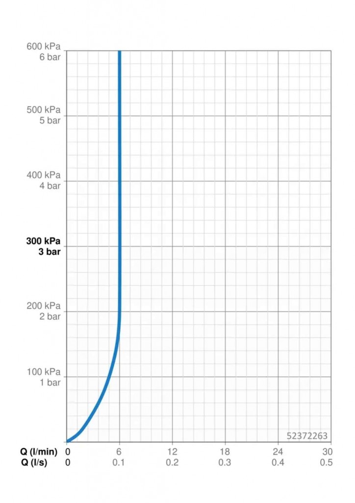 - prietok pri 0,3 MPa: 6 l/min