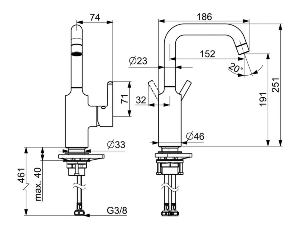 - dĺžka výtoku: 152 mm