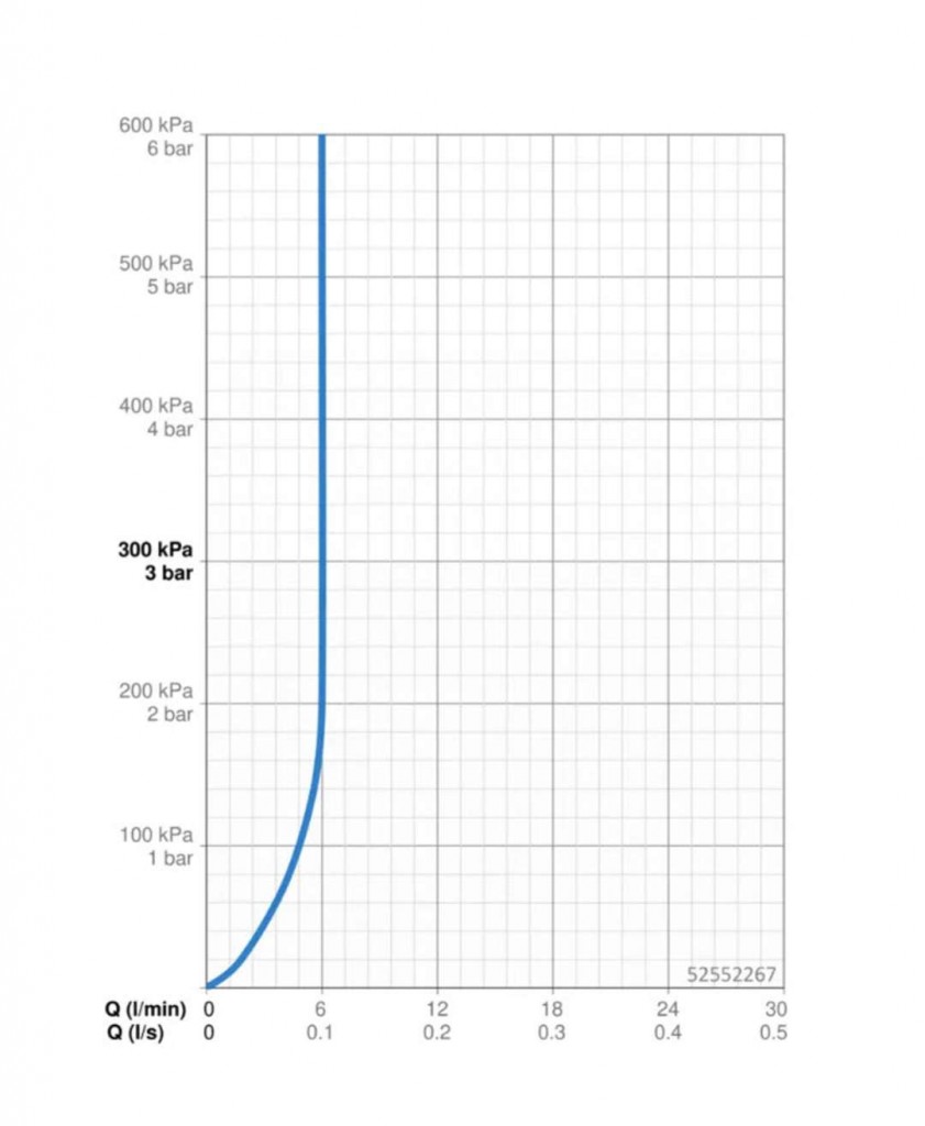 - prietok pri 0,3 MPa: 6 l/min