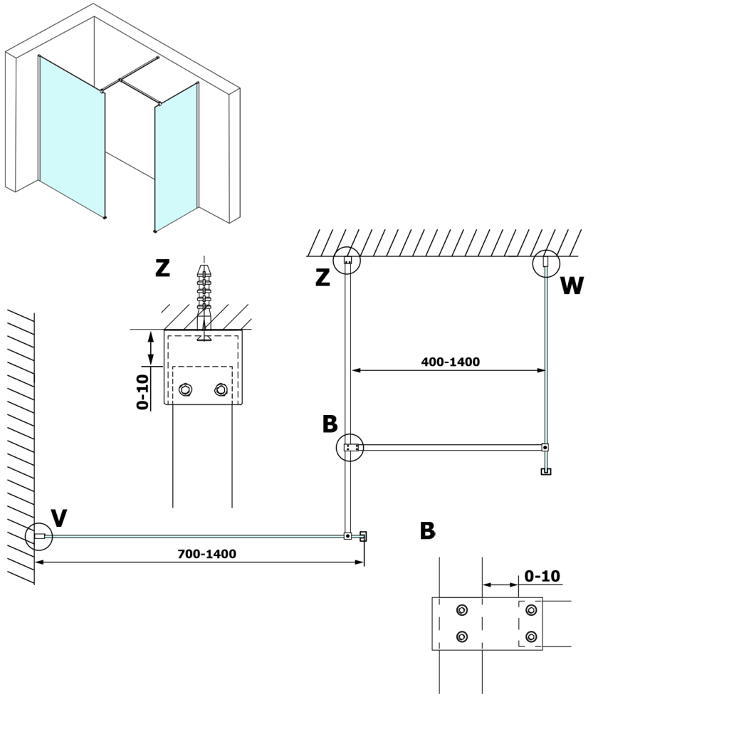 - Zásteny v šírkach 700 až 1400 mm