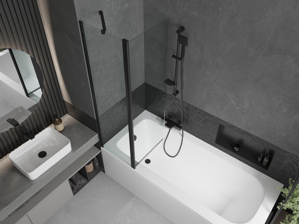 Zástena sa skladá z dvoch častí - pevnej steny a pohyblivého krídla