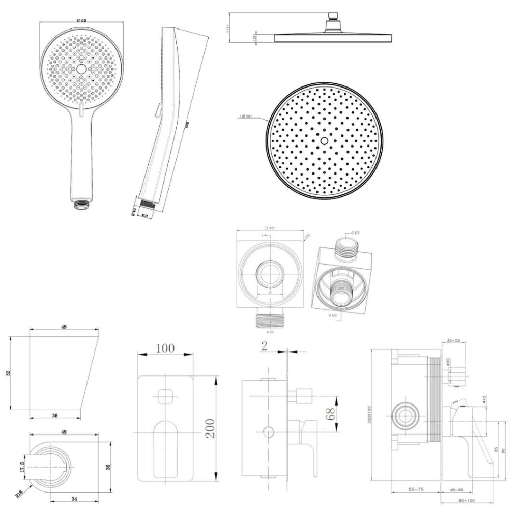 ručnú sprchu 120 mm, 3 prúdy