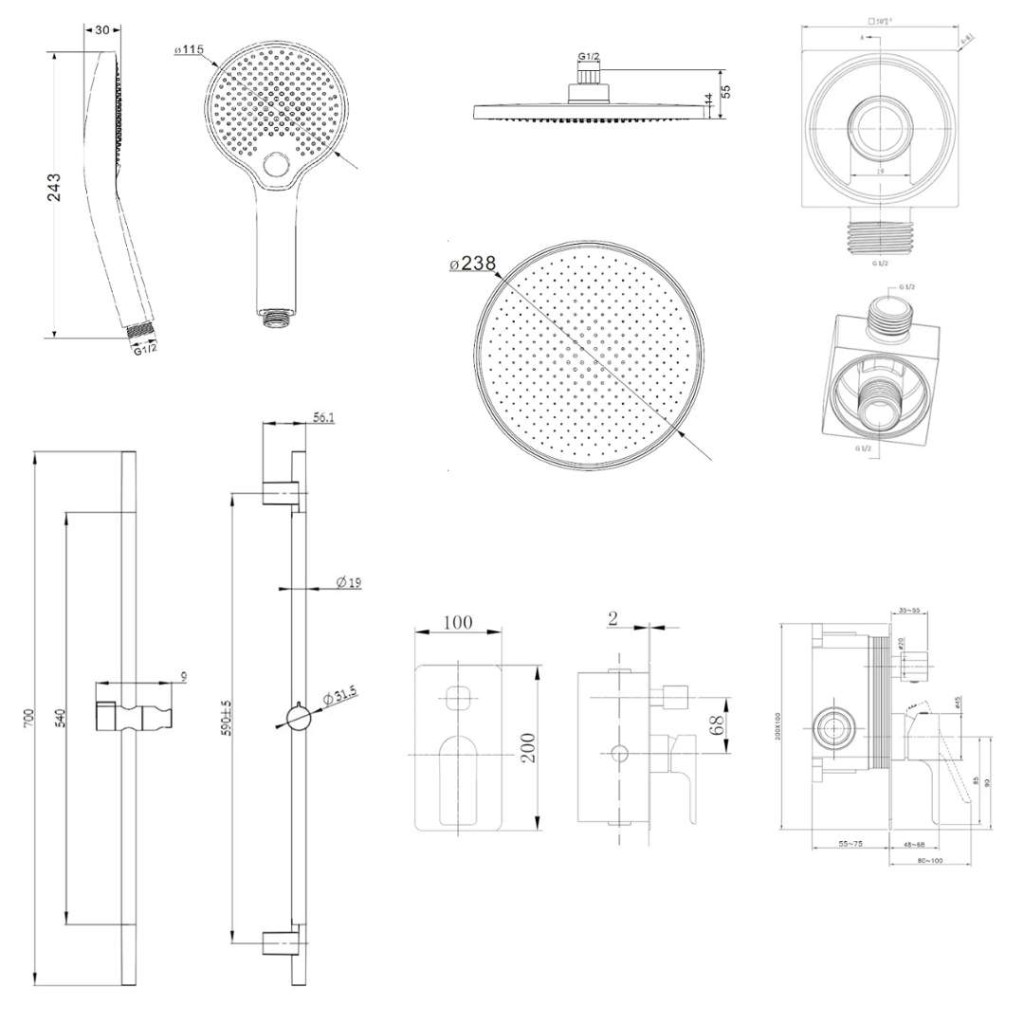 hornú sprchu 238 mm so sprchovým ramenom 350 mm