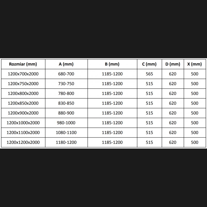 Rozměr: 120x75 cm (dveře 120 cm, stěna 75 cm)