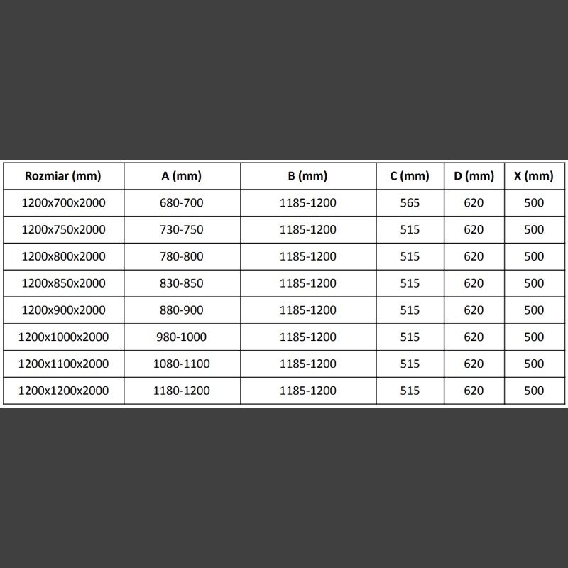 Rozmer: 120x100 cm (dvere 120 cm, stena 100 cm)