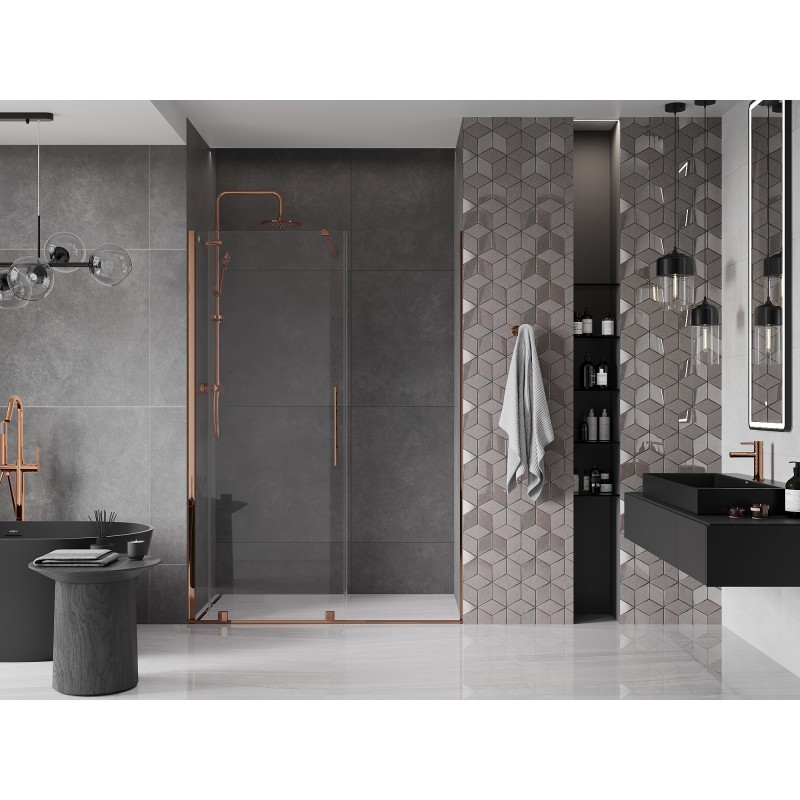 Sprchové dvere s nerezovým oceľovým madlom výšky 200 cm s univerzálnou montážou (pravá/ľavá) z kolekcie Mexen VELAR. Funkčné posuvné dvere so spoľahlivými valčekmi, ktoré zaručujú plynulé a tiché posúvanie. Ochranná nano technológia Easy Clean na tvrdenom skle o sile 8mm uľahčuje ich čistenie, takže si môžete dlhšie užívať dokonale priehľadné a lesklé sklo. Aj napriek tomu odporúčame používať stierku, ktorá zamedzí usychaniu kvapôčok na skle a vzniku nevzhľadného matného povrchu. Vzpera sprchových dverí je vyrobená z nerezovej ocele s maximálnou dĺžkou 150 cm s možnosťou skrátenia na vami zvolený rozmer.