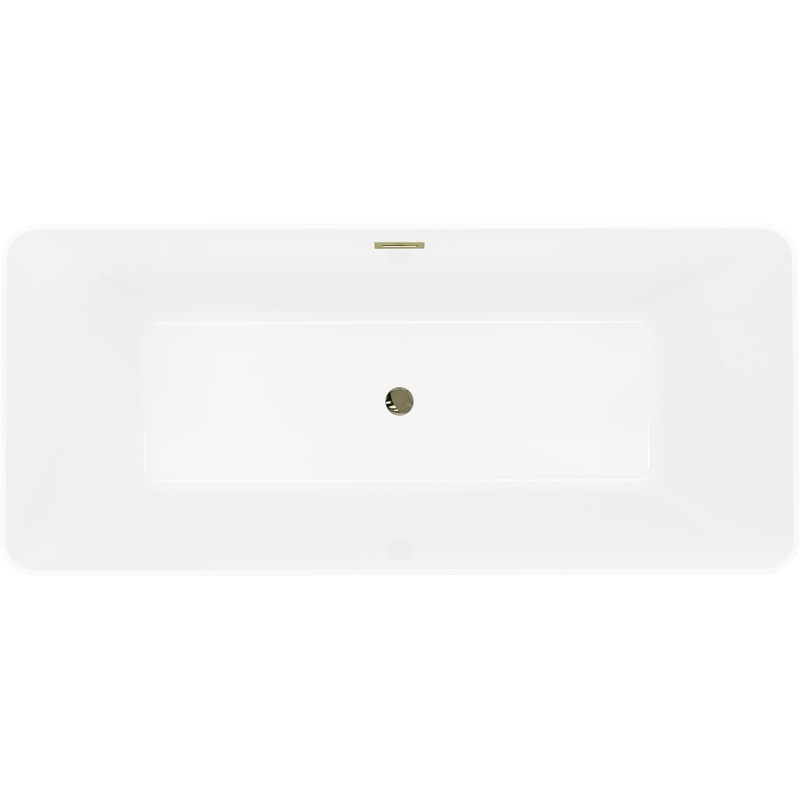 Špecifikácia produktu: Rozmery: 170 x 75 cm Výška: 58 cm Hĺbka: 45 cm Inštalácia: Voľne stojaci Materiál: Sanitárny akrylát Farba: Biela Povrchová úprava: Zlatá Otvor pre prepad: Áno Otvor pre batériu: Nie Sifón a zátka click-clack sú súčasťou balenia Odolné voči ba