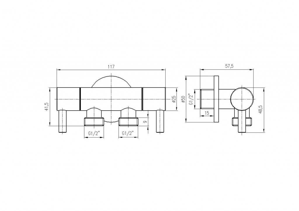 Ventil rohový dvojitý s keramickými vrškami 1/2“ x 2 x 1/2“ - chróm.
