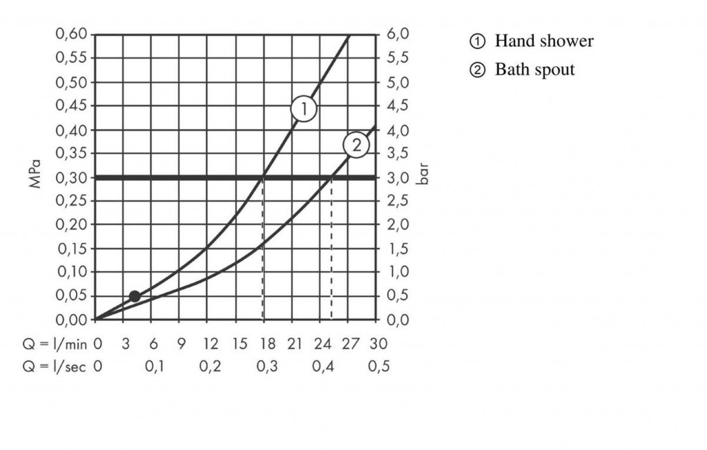 - prietok výtoku vane pri 3 baroch: 25 l / min