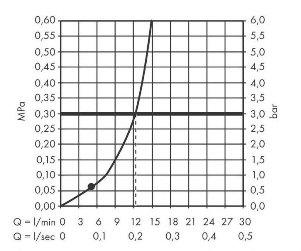 - maximálny prietok pri 0,3 MPa: 12,4 l / min