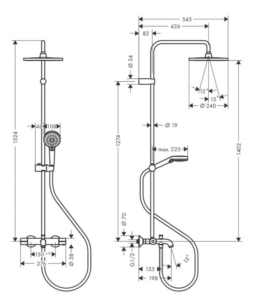 Nástenná sprchová súprava Showerpipe 240 obsahuje
