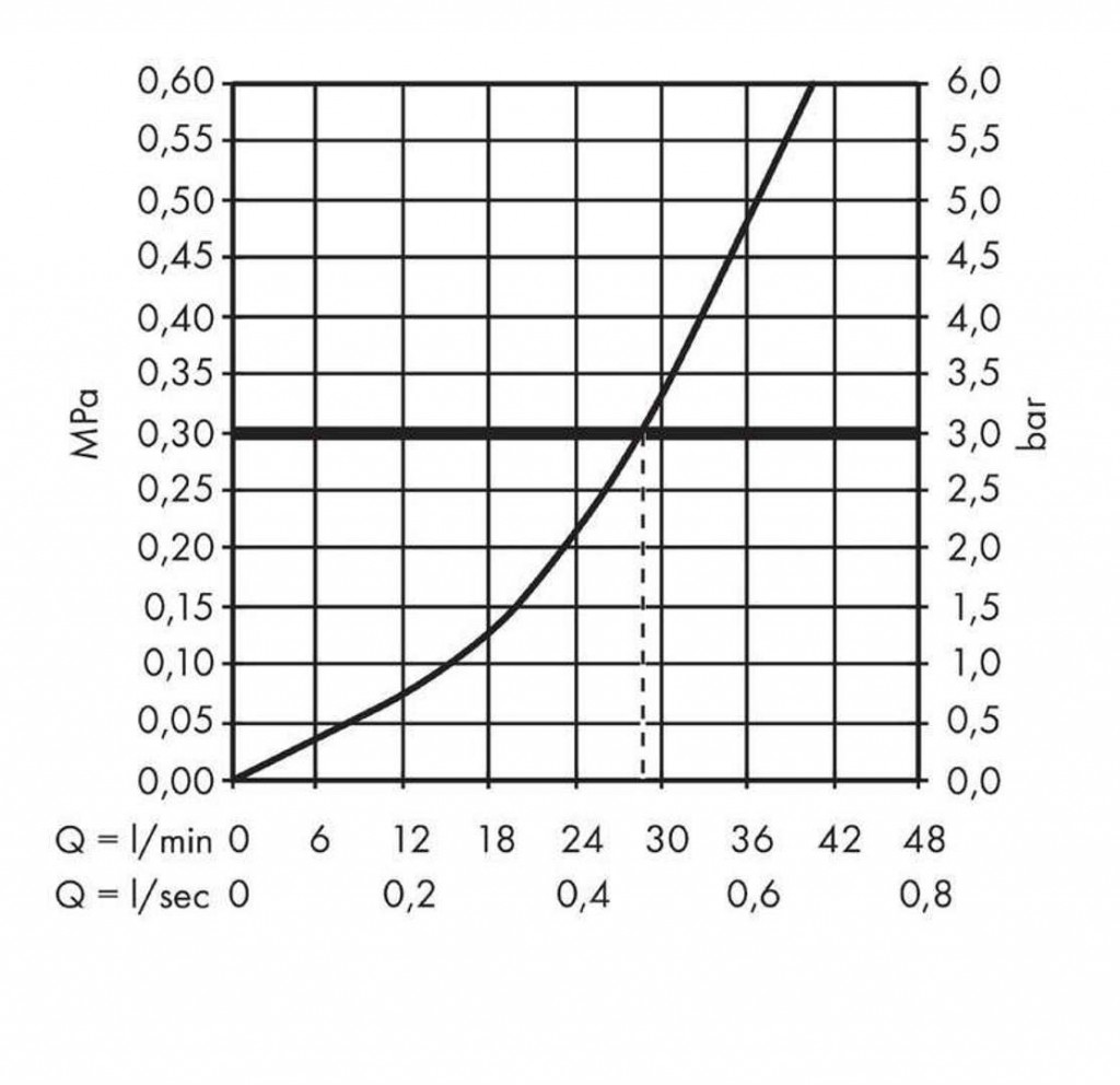 - prietok pri 0,3 MPa: 29,3 l / min