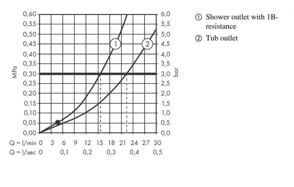 - prietok vaňovým výtokom pri 0,3 MPa: 22,5 l / min