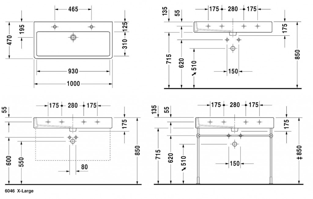Pre umývadla dĺžky 1000 mm a viac je pri zavesení na stenu potrebné použiť 2 sady pre upevnenie (nie je súčasťou dodávky).