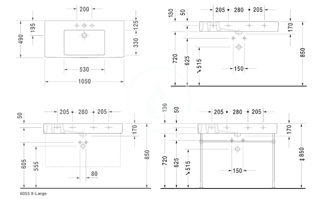 Pre umývadlá s dĺžkou 1000 mm a väčšia je potrebné použiť 2 sady pre upevnenie.
