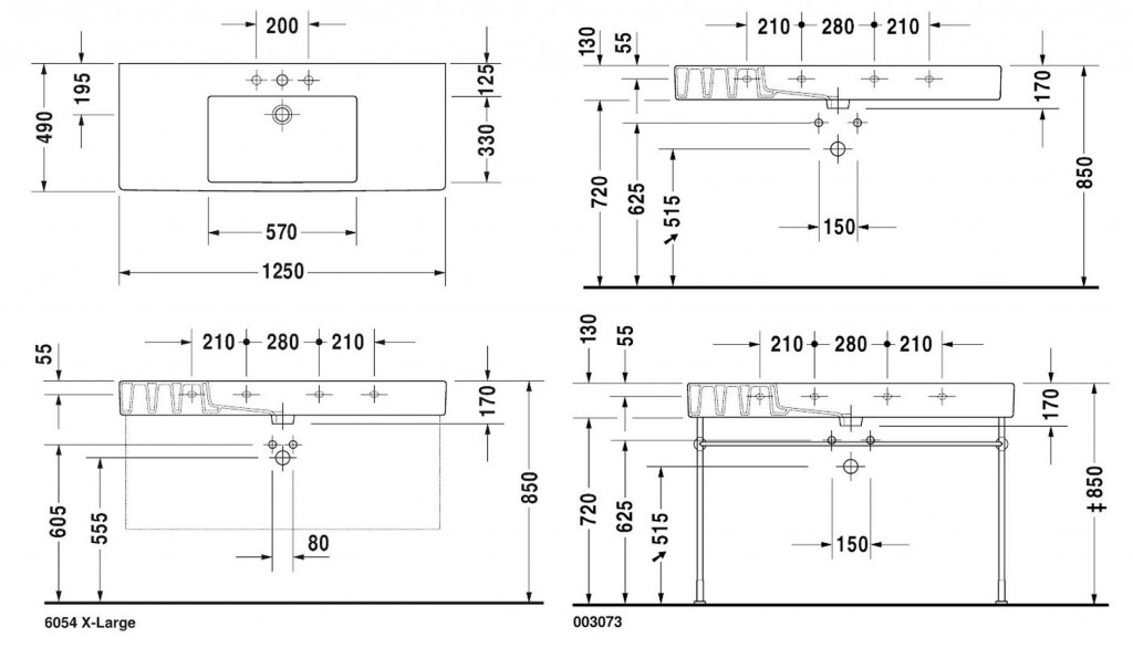 Pre umývadlá s dĺžkou 1000 mm a väčšia je potrebné použiť 2 sady pre upevnenie.