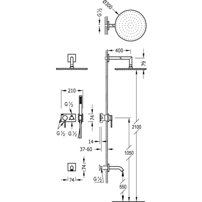 - Pevná sprcha priemer 300 mm. s kĺbom