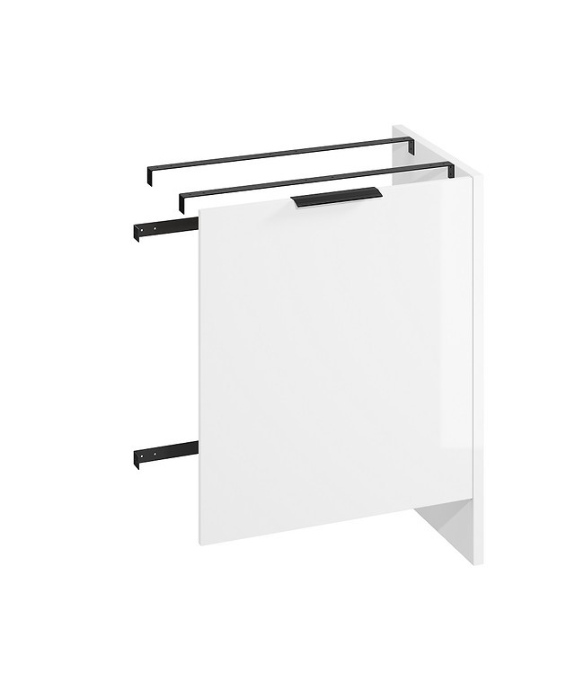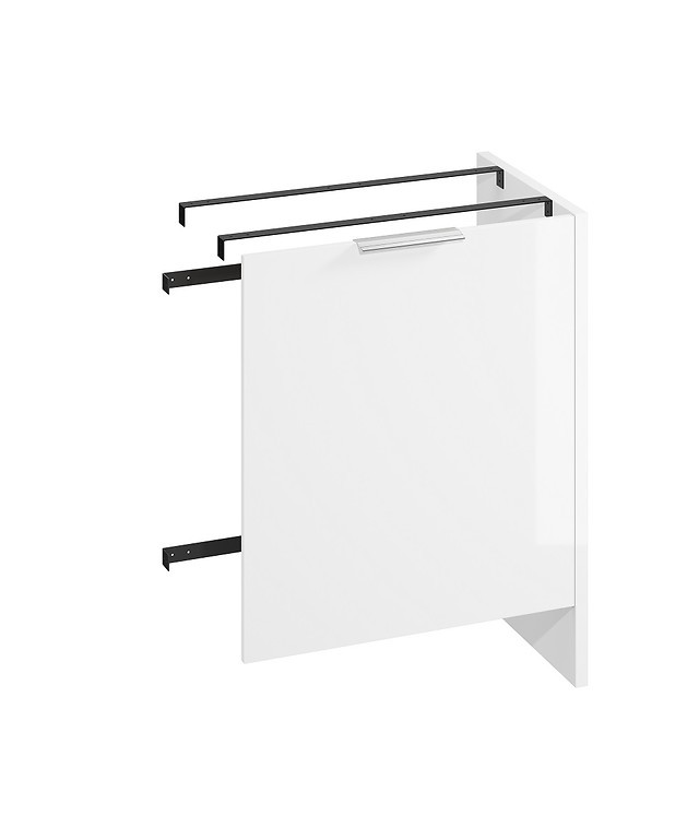 Vstavaná skriňa na práčku s dvierkami dokonale zapadne s domácimi spotrebičmi do celkového dizajnu interiéru a esteticky ich skryje za dvierkami nábytku . Skriňa je vyrobená z bielej drevotrieskovej dosky a dvierka sú vybavené systémom soft-close /mäkké dovieranie/. Je možné zakúpiť úchyty v čiernej alebo striebornej farbe.