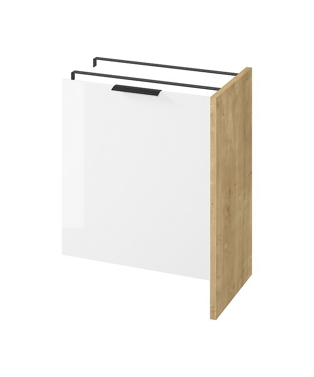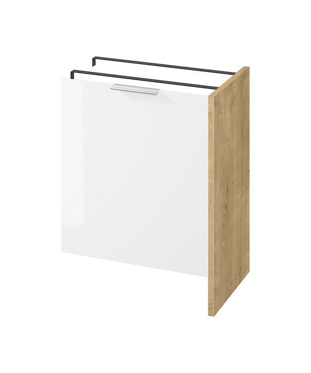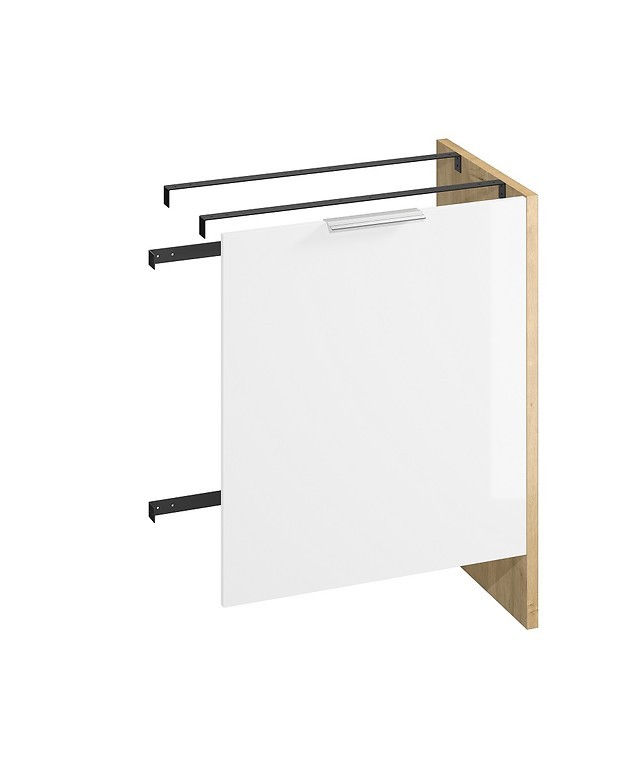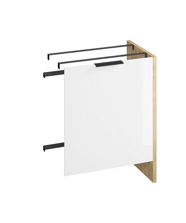 Vstavaná skriňa na práčku s dvierkami dokonale zapadne s domácimi spotrebičmi do celkového dizajnu interiéru a esteticky ich skryje za dvierkami nábytku . Skriňa je vyrobená z drevotrieskovej dosky , s prírodnou dubovou stranou a bielym čelom. D vierka sú vybavené systémom soft-close /mäkké dovieranie/. Je možné zakúpiť úchyty v čiernej alebo striebornej farbe.