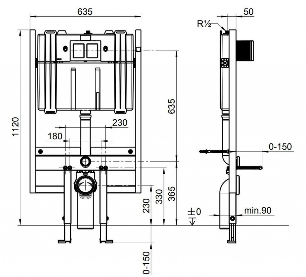- rozsah nastavenia prednej hrany prvku ku stene: min. 90 mm, s nádržkou 80 mm