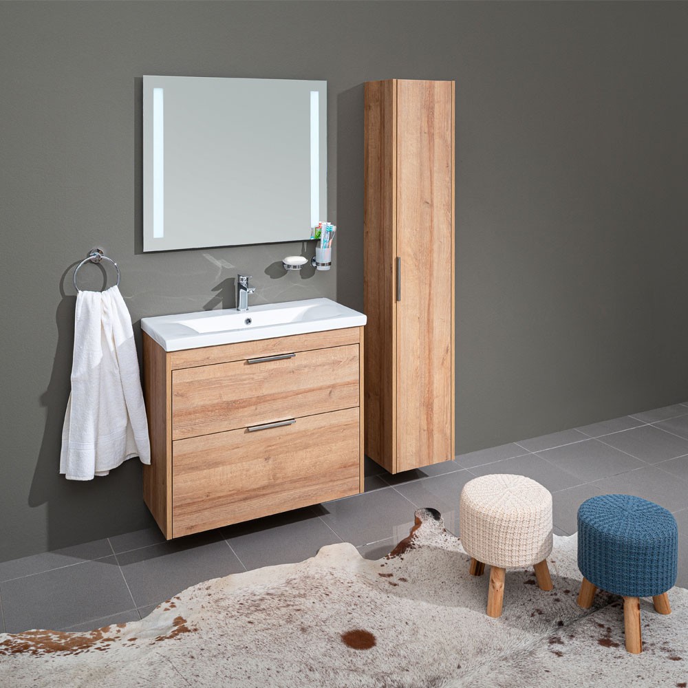 Jednoduchosť, efektívnosť, elegancia. To sú hlavné spoločné menovateľa kúpeľňového nábytku, ktorý ozdobí každú kúpeľňu. Tento rad je vytvorený na univerzálne použitie s elegantným a jednoduchým štýlom. Na výber je z dvoch farebných kombinácií, biela lesk, dub Riviera. Dvierka skriniek sú osadené pánty s tlmeným dovieraním. Skrinka je určená na zavesenie a je dodávaná v zmontovanom stave mimo dvierok, kde si pri montáži pántov zvolíte ľavé alebo pravé otváranie.
