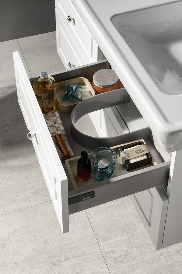 Nábytok je vybavený pojazdy zásuviek s pomalým dojazdom a systémom automatického dovretí zásuviek. Už žiadne hlučné zatváranie.