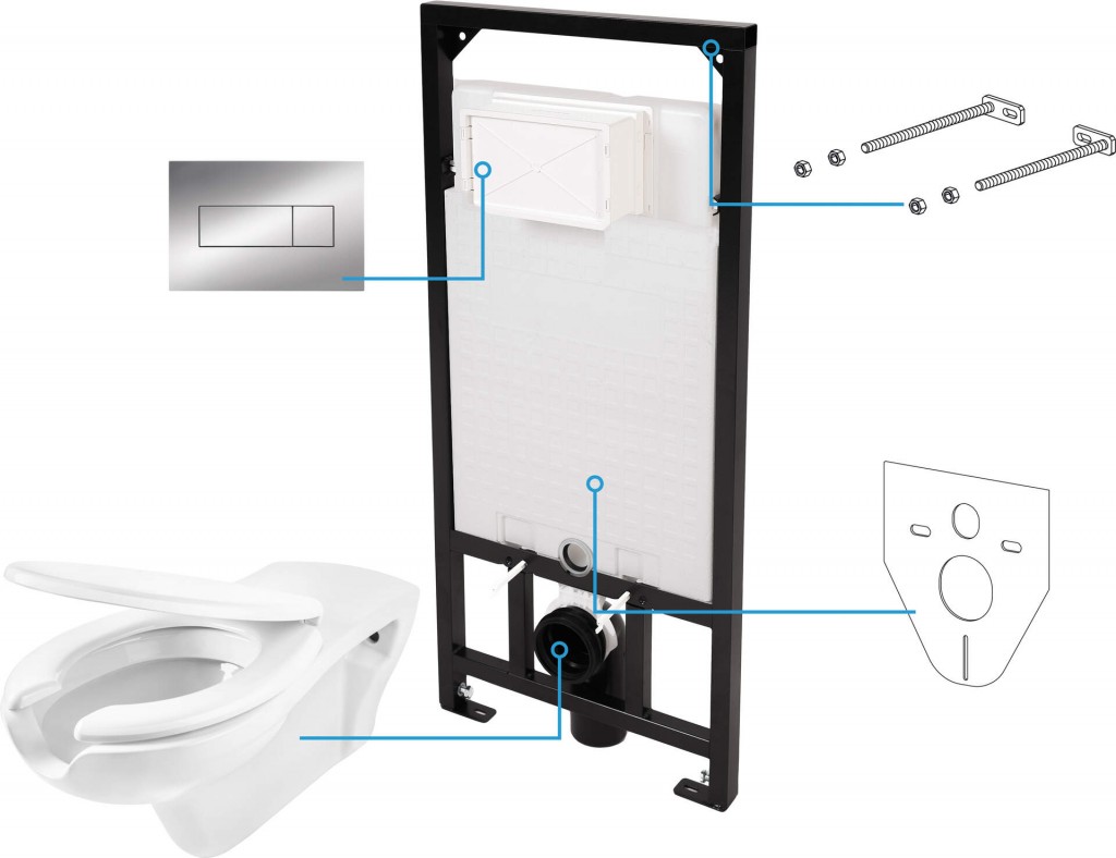 Toaletný set so závesnou misou bol navrhnutý s ohľadom na vysokú estetiku miestnosti a ľahké čistenie. Odolná, kvalitná keramika nepraská a nemení farbu ani po dlhšej dobe používania, čo potvrdil výskum Deante. Univerzálna, klasická, biela farba toaletného setu dodáva miestnosti eleganciu. Vhodné pre zapustené inštalácie. Elegantné prevedenie ozdobí každú kúpeľňu. Jedná sa o kompletnú sadu 6v1, ktorá obsahuje: zapustený rám, záchodovú misu bez okraja, ticho spúšťaciu záchodovú dosku, elegantné splachovacie tlačidlo, podložku tlmiacu nárazy a montážne skrutky.